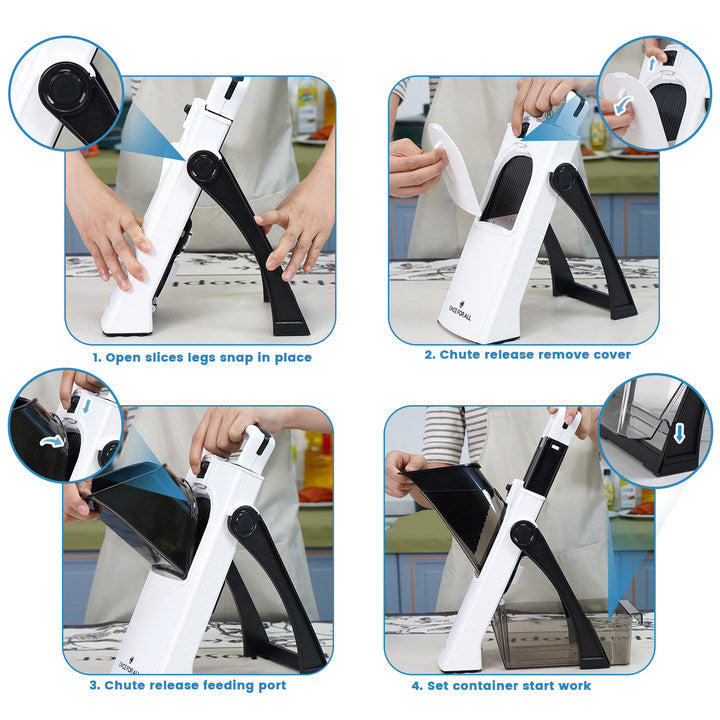 - SAFER SLICER: Safety mandolin slicer for any cook. Sharp hidden blade Slicing is fast, uniform, and easy to set up and clean up, and does not need to glove up or change the blade to use it, This is definitely an upgrade replacement your cooking daily.